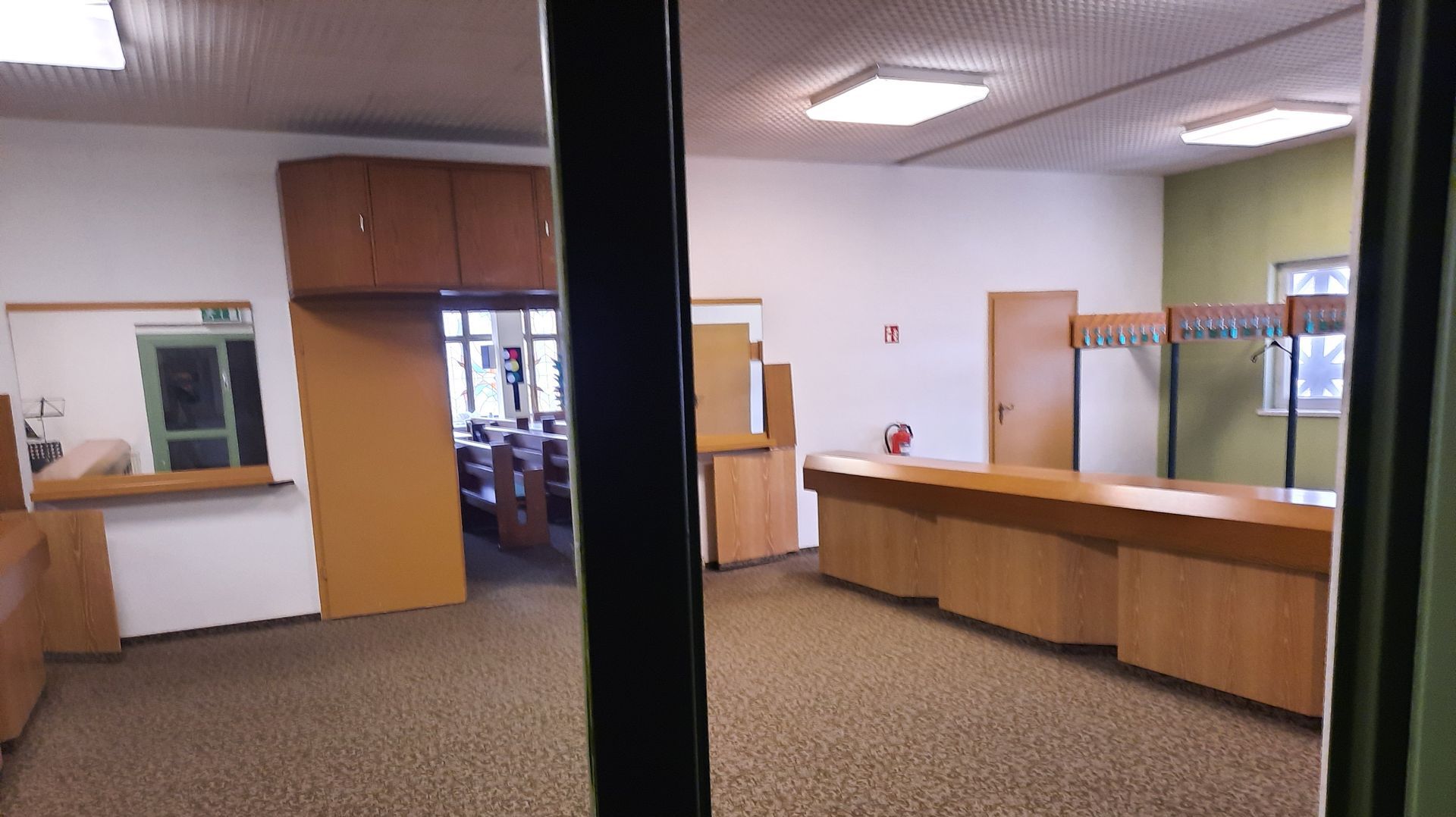 Vorraum: Zugang zu Toiletten, Orgel und Lagerräumen.