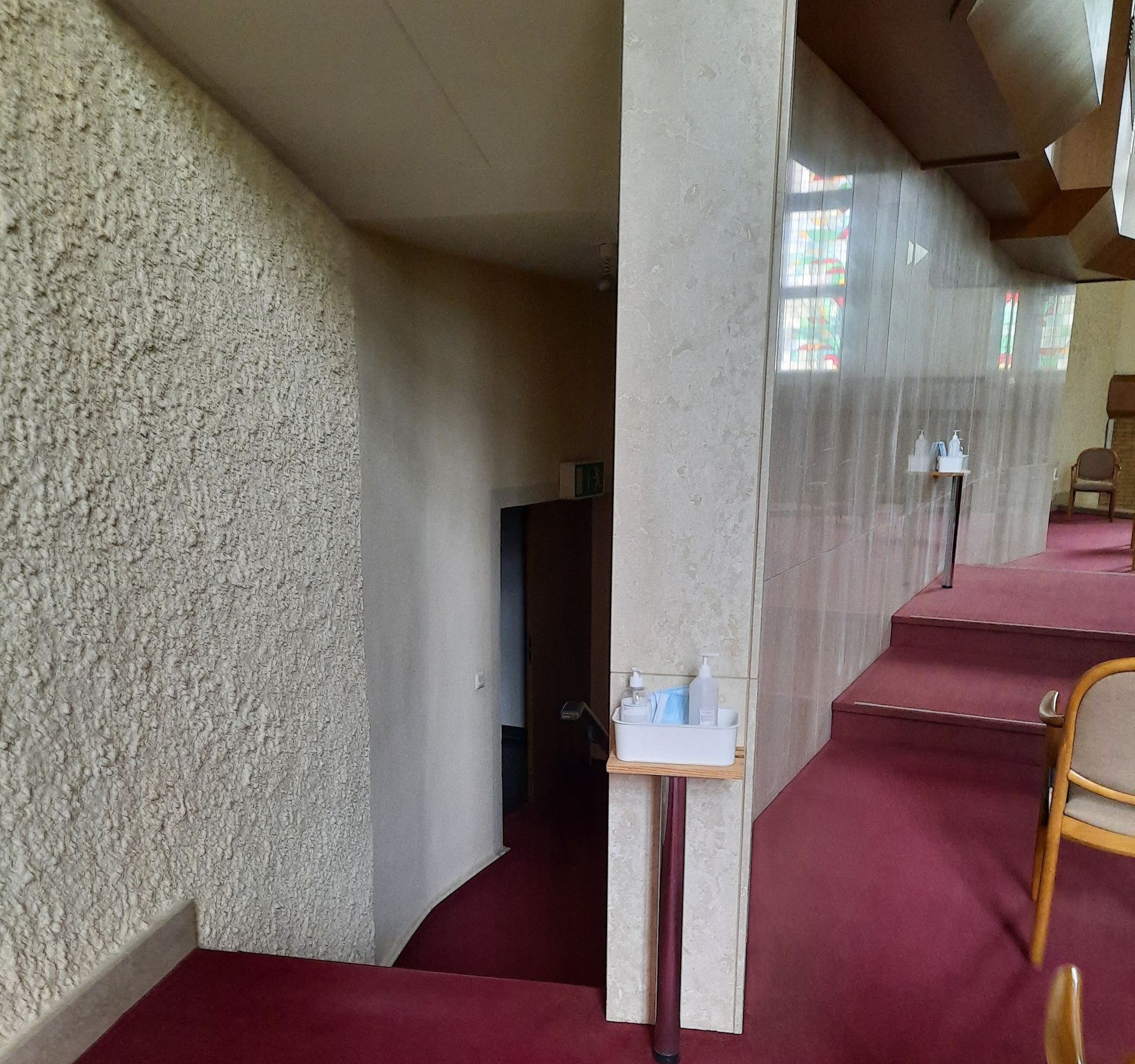 Kirchensaal: Abgang vom Altar.